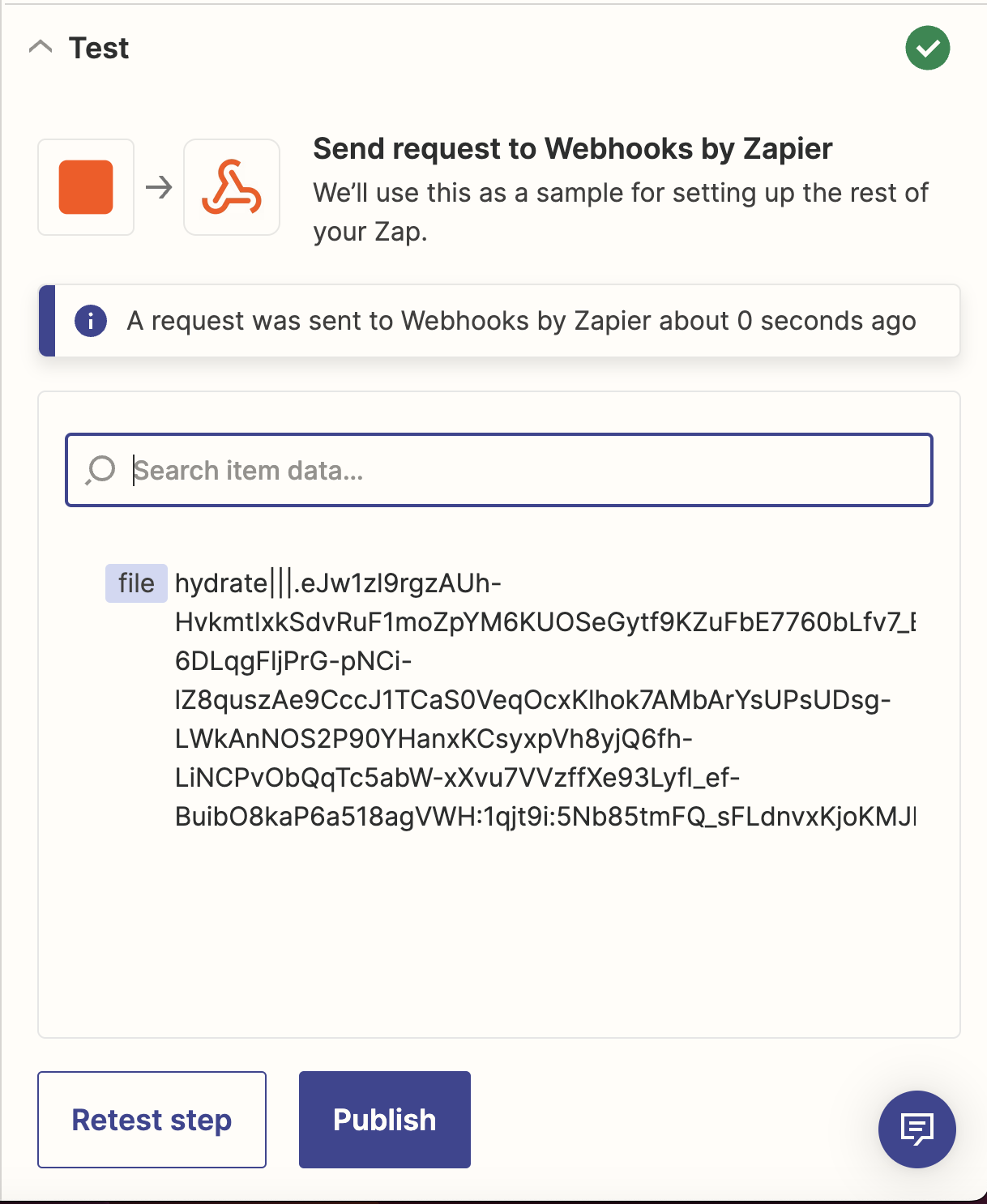 In the next section we'll test the end to end. But first we'll send some data to test the event triggers the Zapier Zap